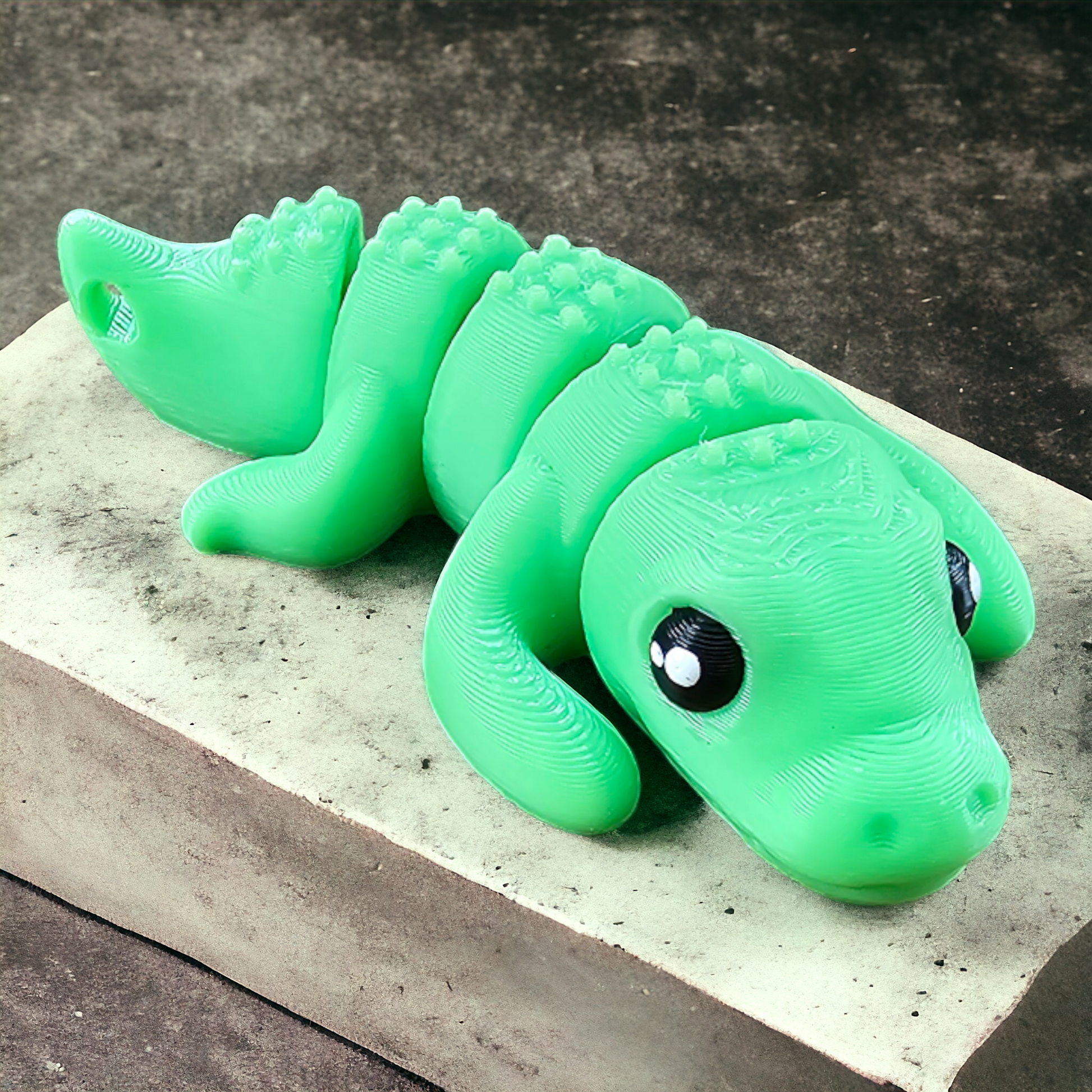 Disclaimer: Note that the Flexi Baby Alligator comes with the uniqueness of 3D printing, which may include variations in the filament used and the painting. PLA, the chosen material, has characteristics such as heat sensitivity and may show layer lines or minor imperfections. This product is intended for individuals aged 13+.