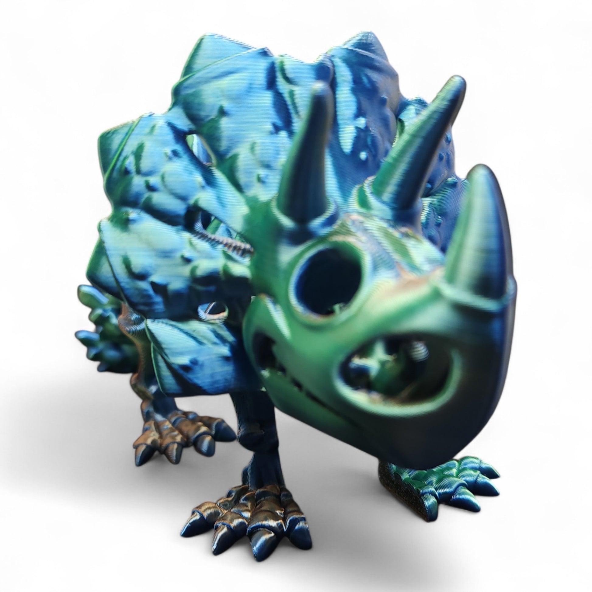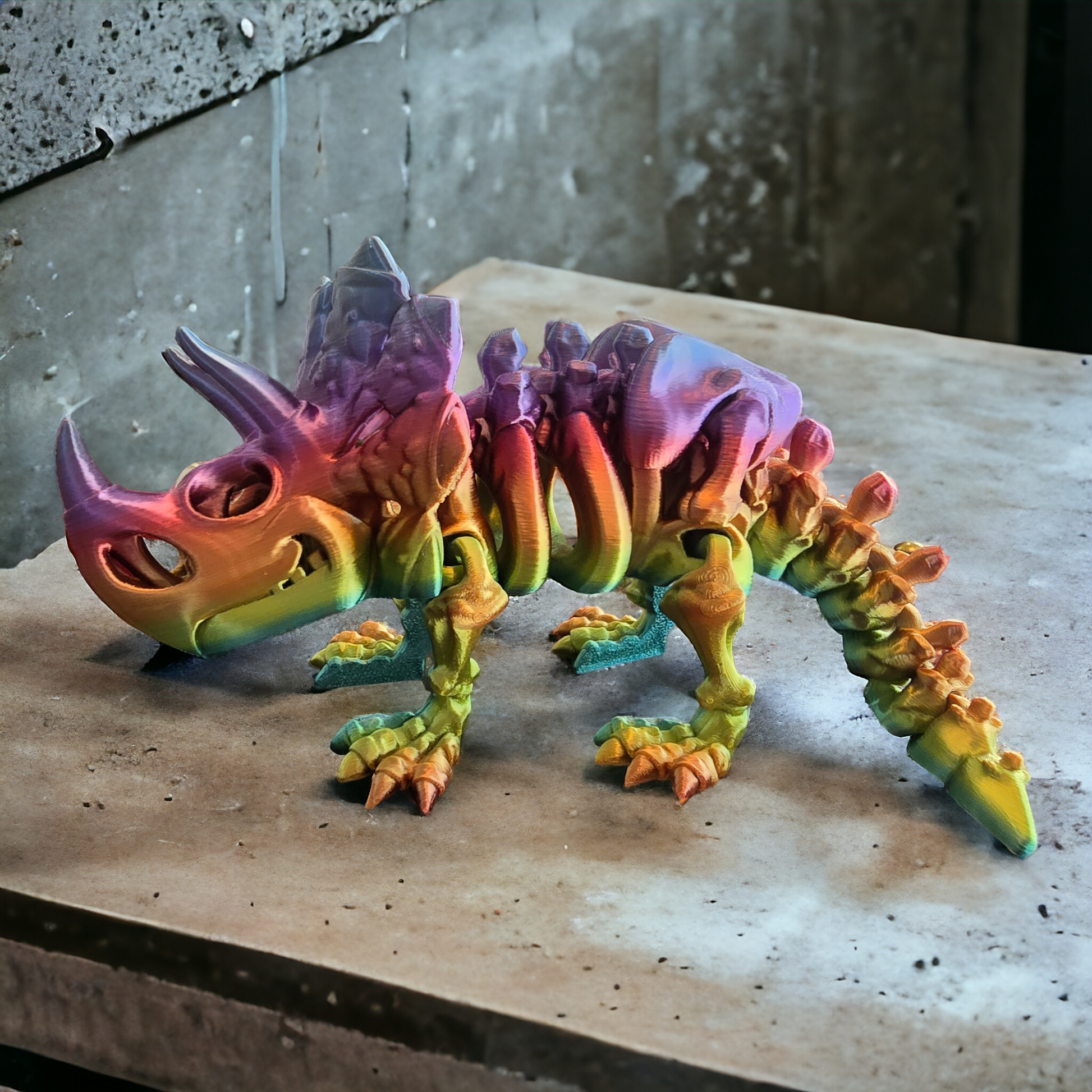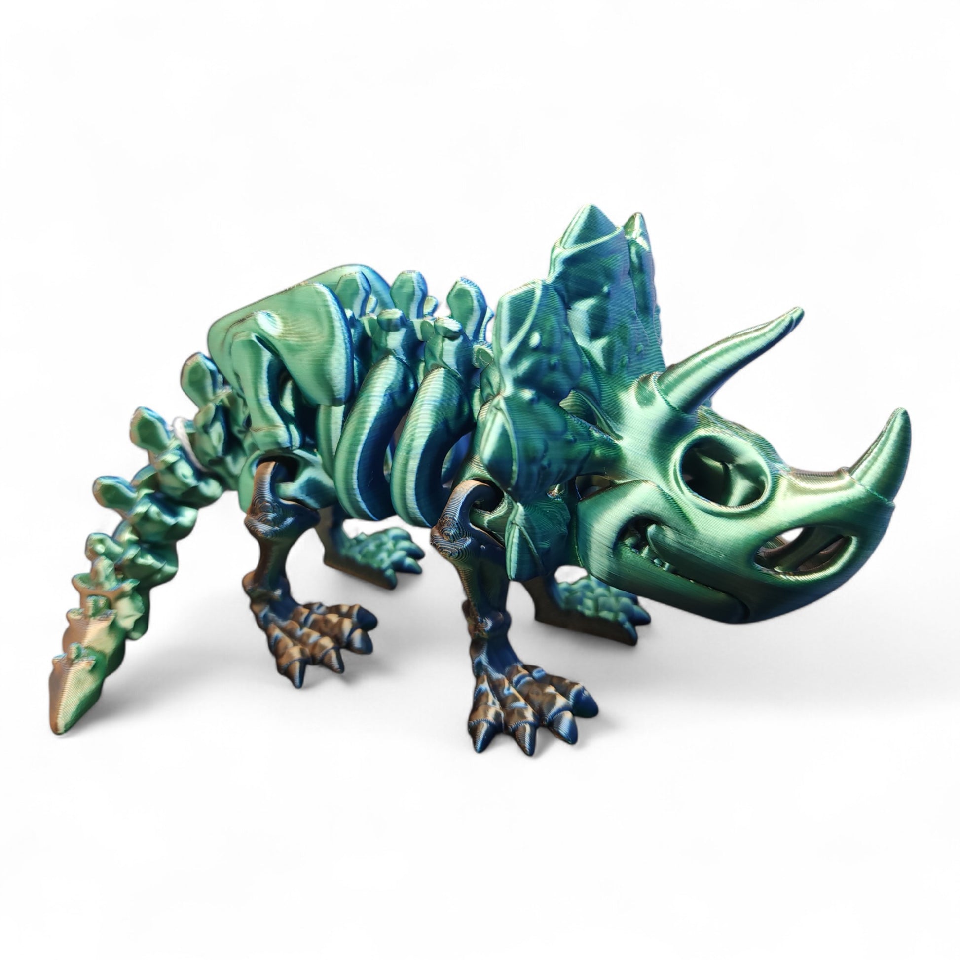 Unleash your imagination with this intricately designed Flexi Triceratops Skeleton, a mesmerizing fusion of prehistoric grandeur and modern design. Perfect for those who appreciate the majesty of ancient creatures and the artistry of 3D printing.